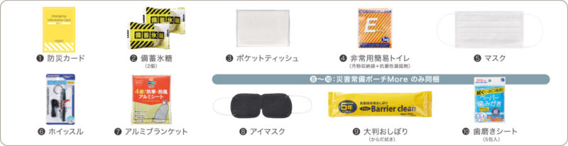 - JBP-100:衛生用品や休息アイテムが増え、“よりしっかり備えたい人向け”