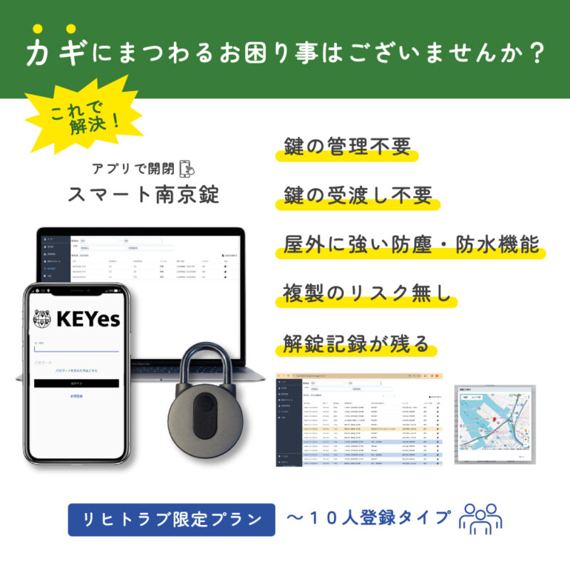LIHIT LAB.のスマート南京錠KYS-01は、これまでの南京錠で課題だった鍵の管理の手間やセキュリティへの不安を、スマートフォンとクラウドを活用して解決する法人向け製品です。