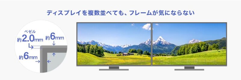 本製品は、辺極細フレームを採用しており、マルチディスプレイ環境でも違和感なく並べられます。さらに、台座にはスマホスタンドが付属しており、テレワーク中にスマホ通知を確認したり、動画を視聴する際に便利です。