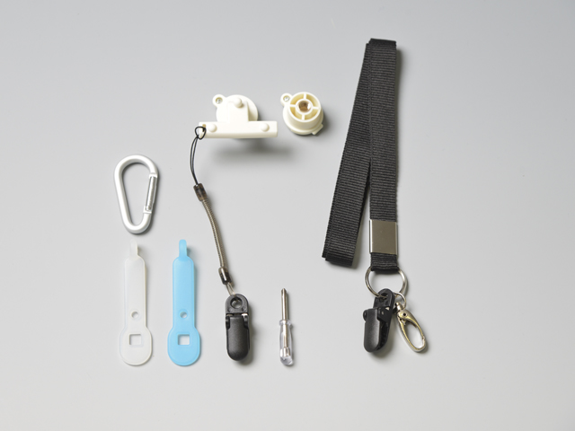 標準で吊り下げ用アタッチメント(色違い2本)、カラビナ、ネックストラップ、三脚取付用電池フタ、ヘルメット取付用電池フタ(落下防止ストラップ付き)、ドライバー、お試し用電池が付属します。三脚固定やヘルメット装着によって、現場の動線や作業形態に合わせた柔軟な配置が可能です。