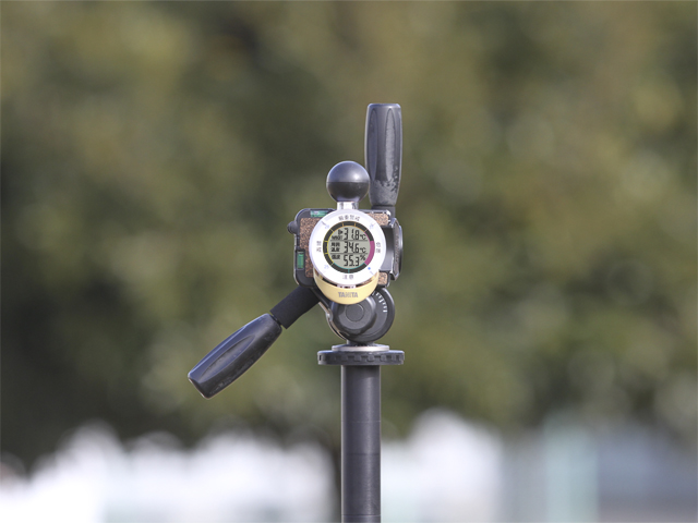 屋外(日射時)は黒球が陰にならない装着が重要です。腰や首に吊る、ヘルメットへ装着、または三脚固定などで、体や装備が黒球に影を落とさない位置を確保します。地面直置きは、照り返しで周囲温度が過大になり誤差の要因になるため避けましょう。