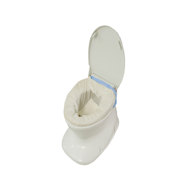 ベッドサイドでの排泄介助やポータブルトイレのライナーとして使用することで、介護者の負担軽減と衛生面のリスク低減に役立ちます。紐付きでしっかりと口を閉じられるうえ、凝固パッドが内容物を素早くジェル化するため、処理時の飛び散りや臭いを抑えることができます。